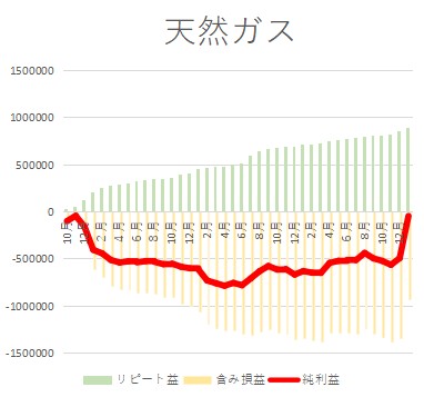 銀CFDリピートの損切りも発生する中で、3年ぶりに天然ガスCFDリピートの収支が回復しました。